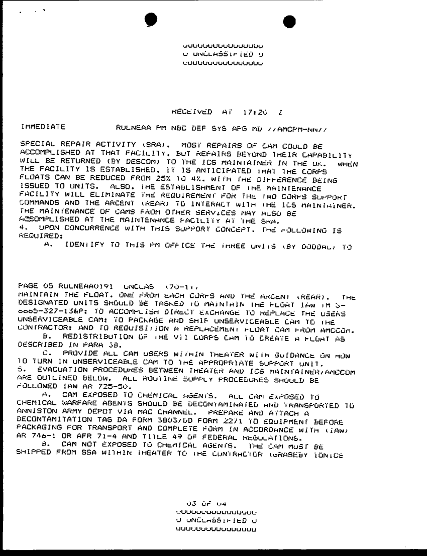 Document 5 f:/Week-29/BX000404/TACTICAL OPERATIONS CENTER LOGS - MSG FILE LOGS 18-19 DEC 90/maintenance support for chemical agent monitor:10019616505255