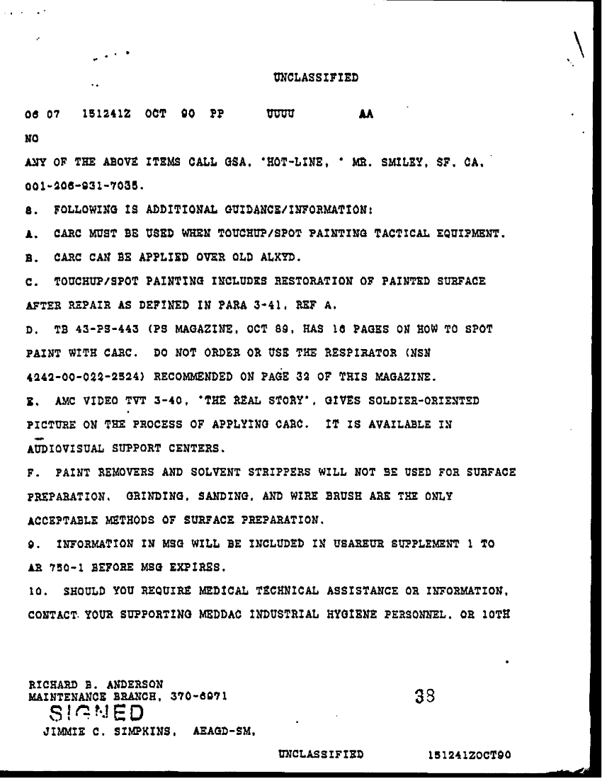Document 22 f:/Week-25/BX000218/525-2B-9 PORT OPNS CARC PAINTING POLICY/vii corps carc painting policy:10019616504437