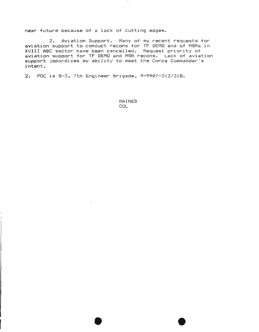 Document 87 f:/Week-24/BX000213/SITUATION REPORTS 7TH ENG BDE 22 DEC 90- 10 APR 91/daily commander sitrep:10259613090426