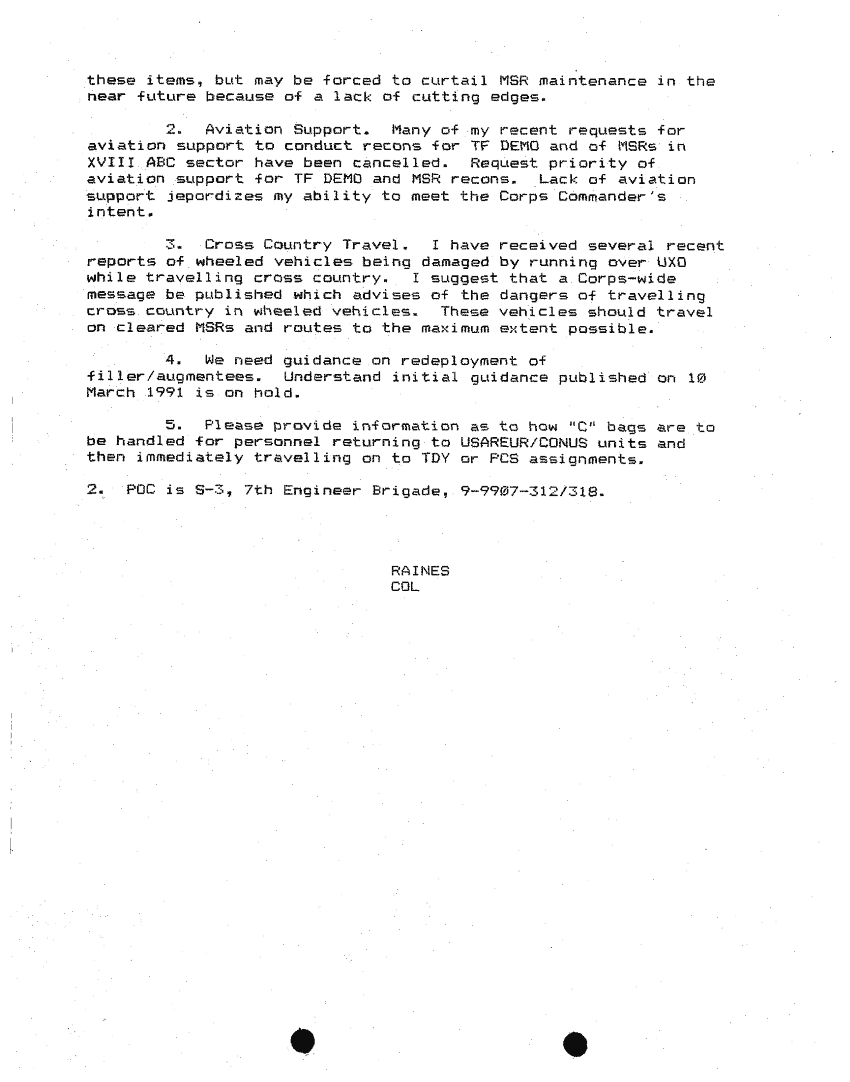 Document 87 f:/Week-24/BX000213/SITUATION REPORTS 7TH ENG BDE 22 DEC 90- 10 APR 91/daily commander sitrep:10259613090426