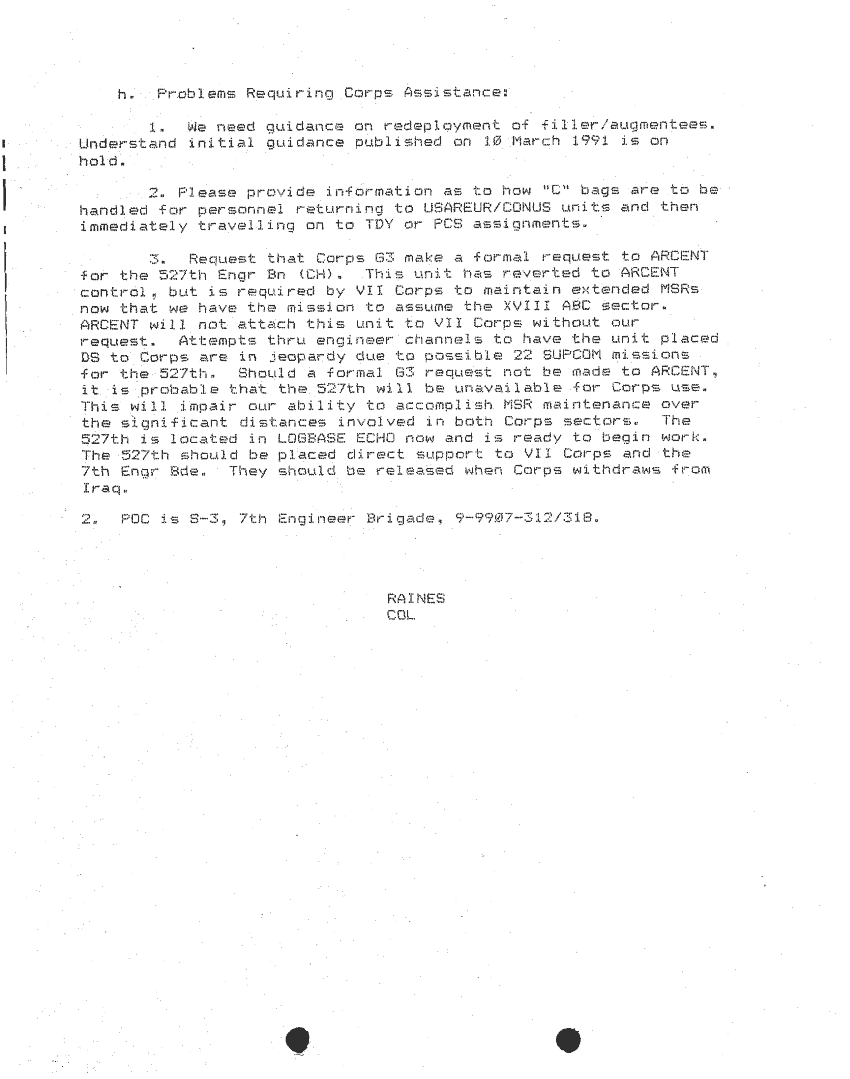 Document 87 f:/Week-24/BX000213/SITUATION REPORTS 7TH ENG BDE 22 DEC 90- 10 APR 91/daily commander sitrep:10259613090426