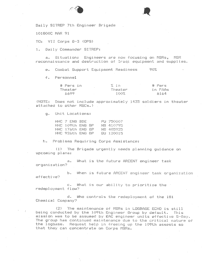 Folder Title = SITUATION REPORTS 7TH ENG BDE 22 DEC 90- 10 APR 91
