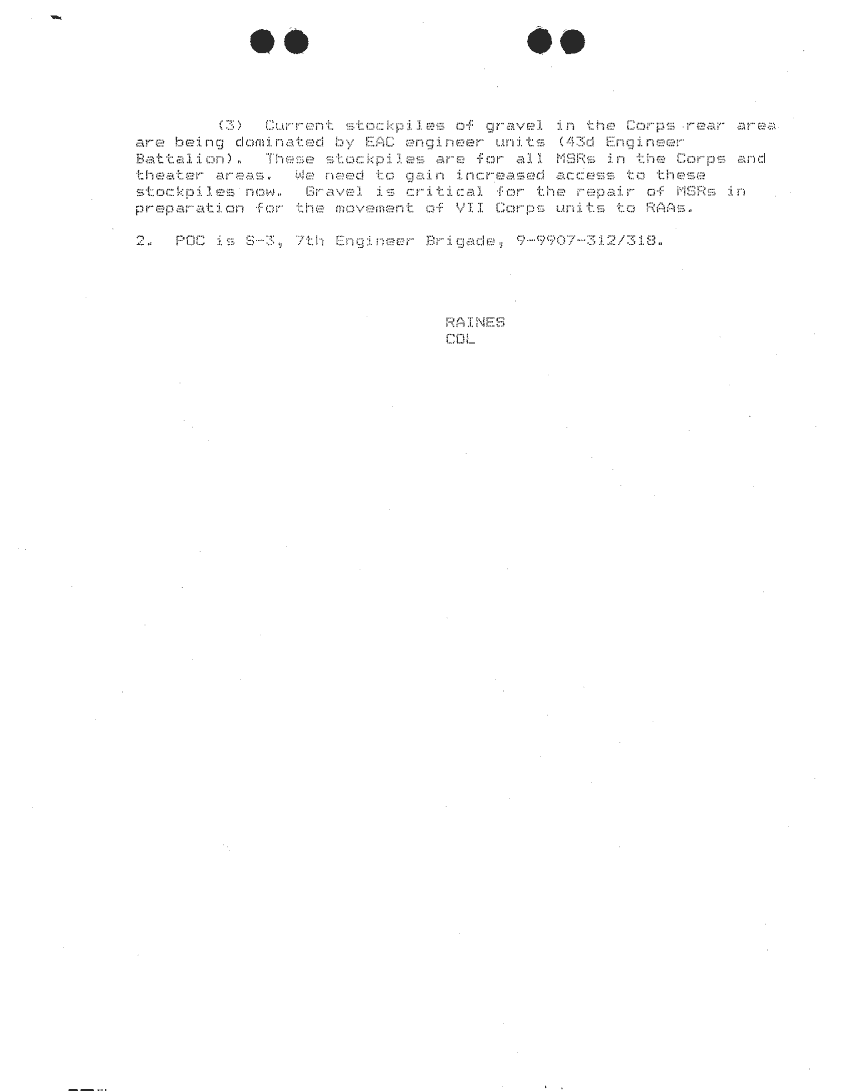 Document 87 f:/Week-24/BX000213/SITUATION REPORTS 7TH ENG BDE 22 DEC 90- 10 APR 91/daily commander sitrep:10259613090426