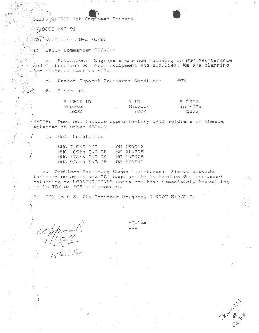 Folder Title = SITUATION REPORTS 7TH ENG BDE 22 DEC 90- 10 APR 91