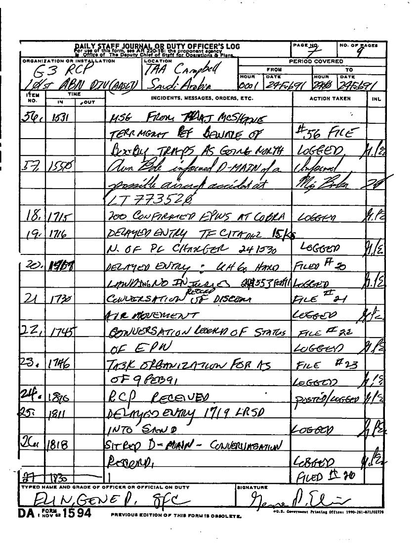 Document 48 f:/Week-22/BX001604/DUTY LOG G3 MAIN 15-27 SEP 90 G3 REAR 21-28 FEB 91/daily staff journal:10259613091549