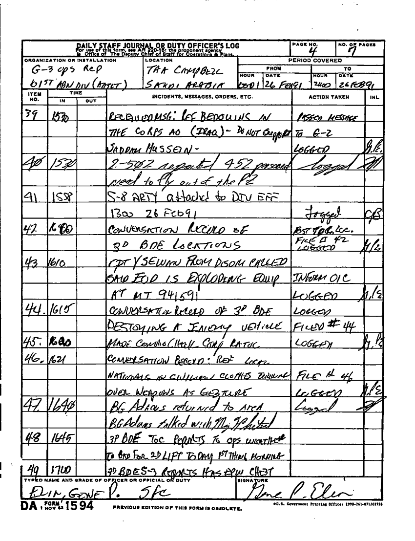 Document 48 f:/Week-22/BX001604/DUTY LOG G3 MAIN 15-27 SEP 90 G3 REAR 21-28 FEB 91/daily staff journal:10259613091549