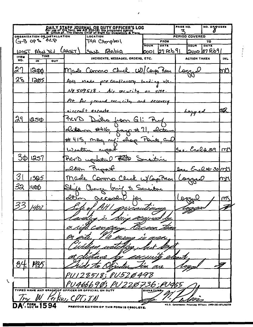 Document 48 f:/Week-22/BX001604/DUTY LOG G3 MAIN 15-27 SEP 90 G3 REAR 21-28 FEB 91/daily staff journal:10259613091549