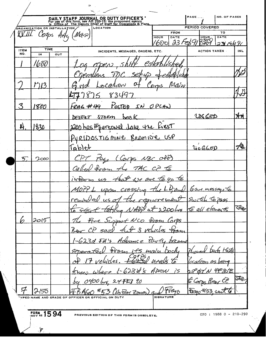 Document 4 f:/Week-18/BX000062/DUTY LOG-MAR-FEB 91/daily staff journal or duty officers log:11049609131648