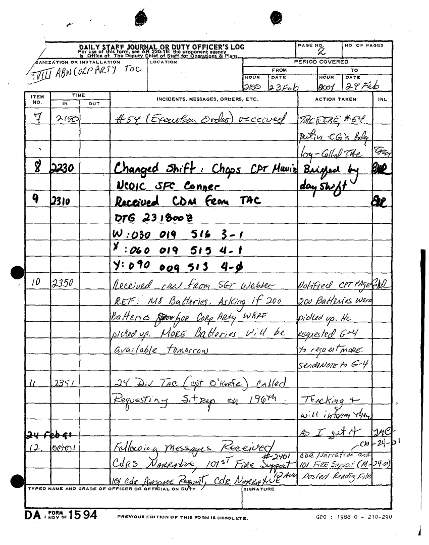 Document 4 f:/Week-18/BX000062/DUTY LOG-MAR-FEB 91/daily staff journal or duty officers log:11049609131648