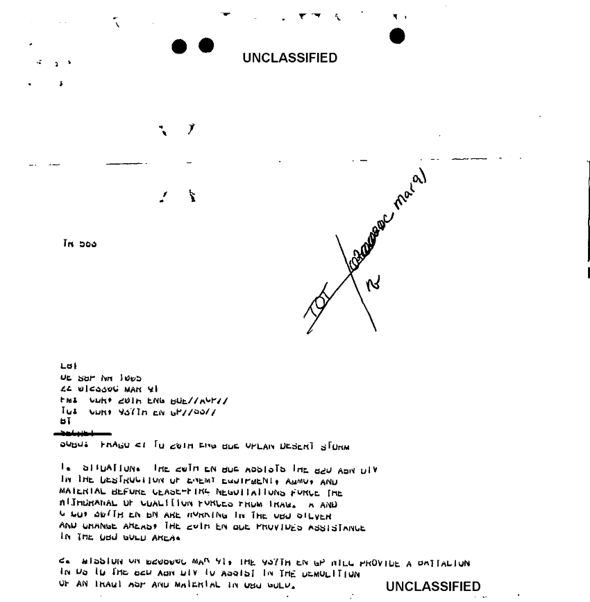 Document 5 f:/Week-18/BX000057/DUTY LOG MAIN CP MESSAGES 20 ENGINEER BDE 1 MAR 91/frago 27 20th eng bde oplan desert storm 1 ma:11049609124512