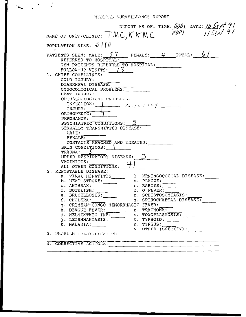 Folder Title = KKMC 212 MED DET MEDICAL SURVEILLANCE REPORTS 17 SEP - 05 NOV 91