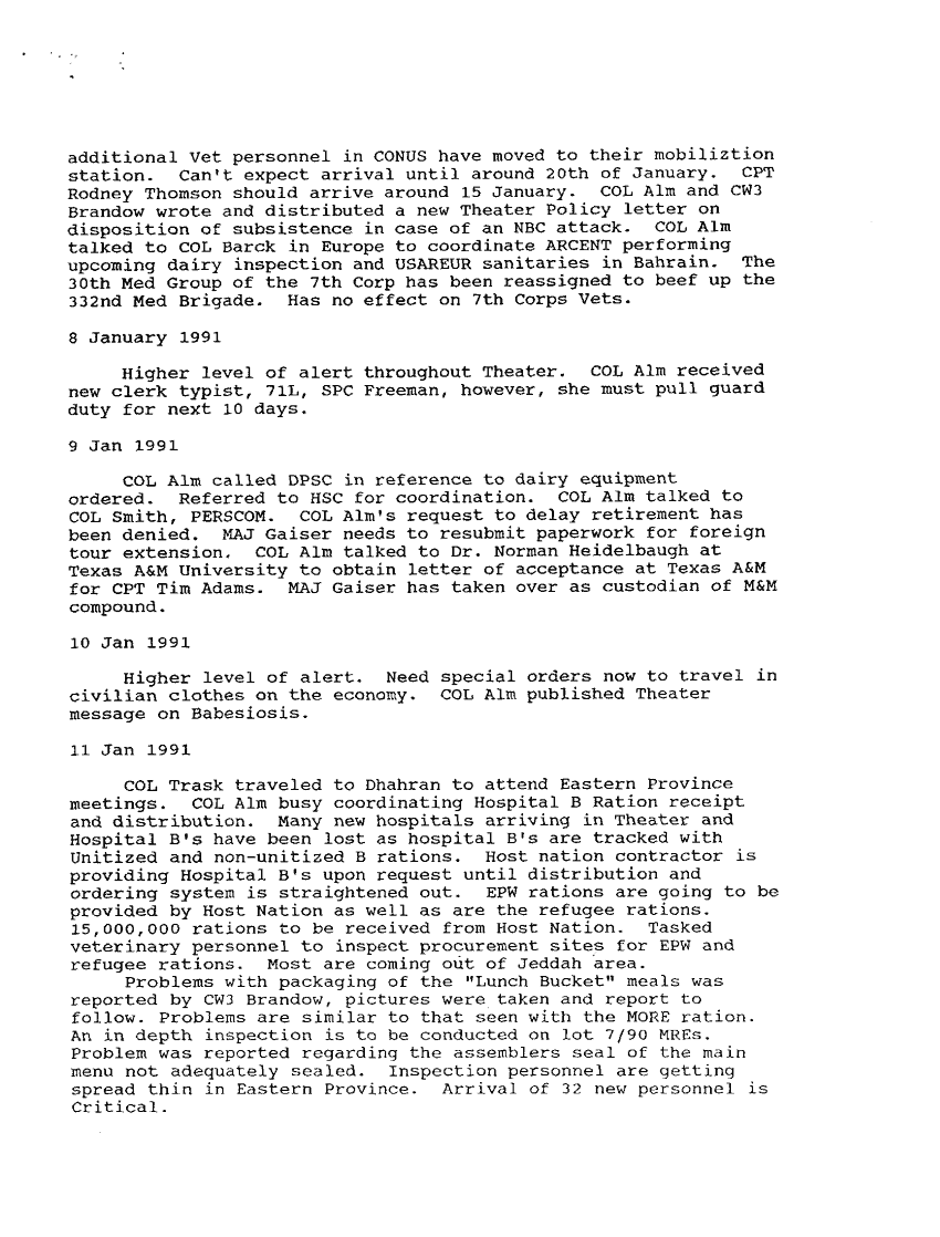 Subject = SUMMARY OF DAILY ACTIVITIES ARCENT VET OFFICE RI