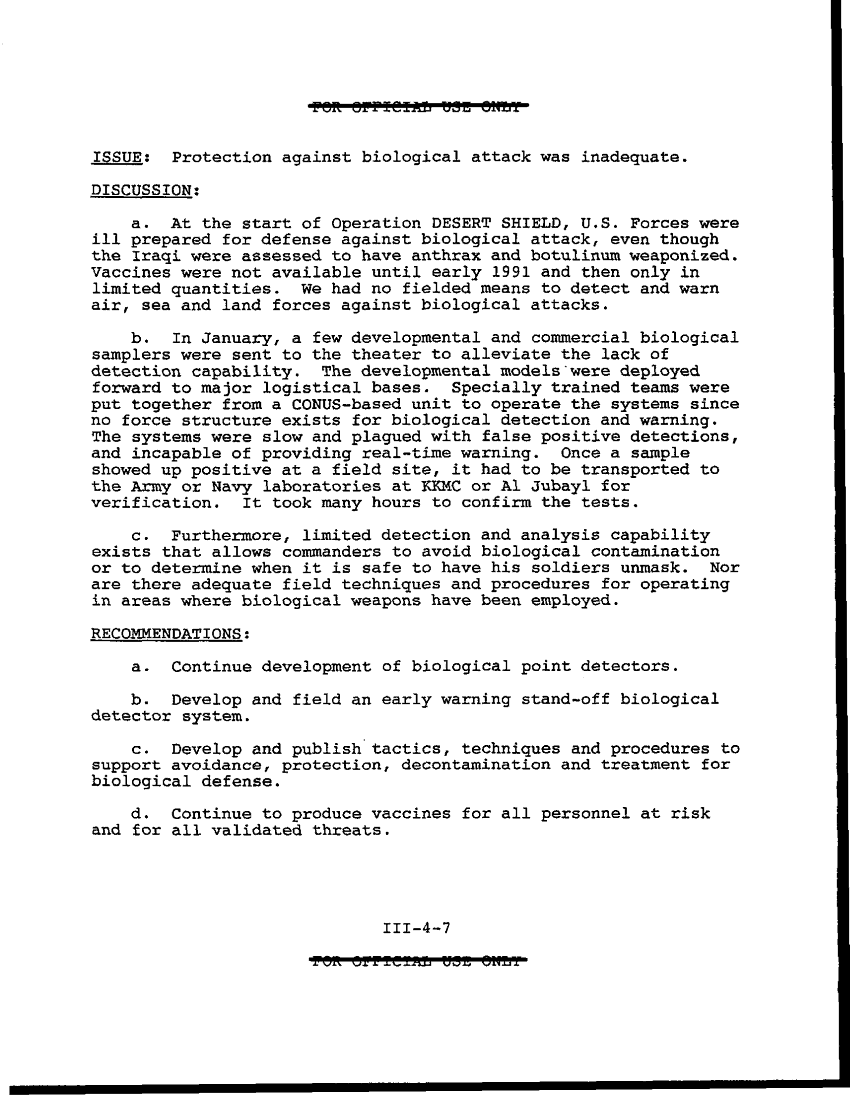 Document 1 f:/Week-29/BX000426/OPERATIONS DESERT STORM LESSONS LEARNED VOL 3/protection against biological attack:11049609131547