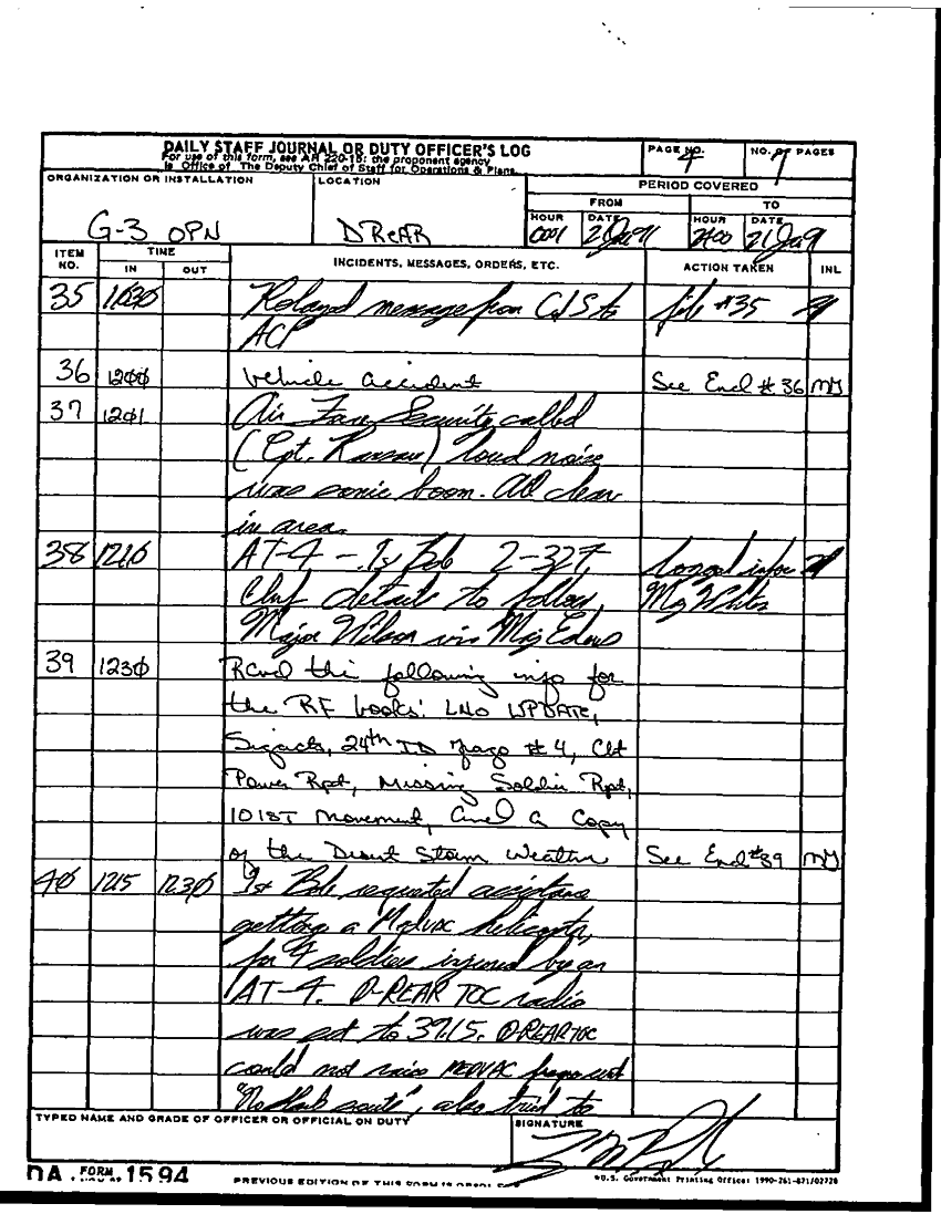 Folder Title = DUTY LOG G3 REAR 21 JAN 91