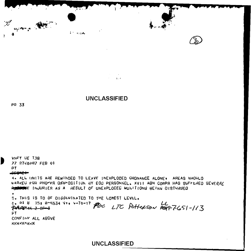 Document 3 f:/Week-10/BX000020/DUTY LOG G3 REAR INCOMING MESSAGES 20 FEB - 14 MAR 91/unexploded munitions:11049609131546