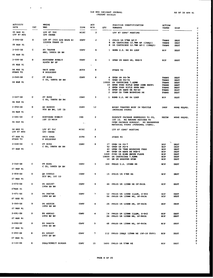 Document 196 f:/Week-42/BX005554/ARMY EOD IN DESERT STORM RESPONCE TO THE ASSISTANT SEC OF DEFENSE/request for information concerning eod operation:1104960912392