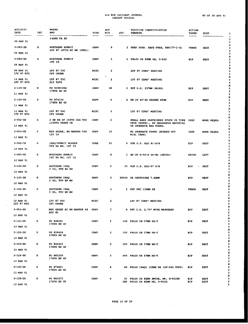 Document 196 f:/Week-42/BX005554/ARMY EOD IN DESERT STORM RESPONCE TO THE ASSISTANT SEC OF DEFENSE/request for information concerning eod operation:1104960912392