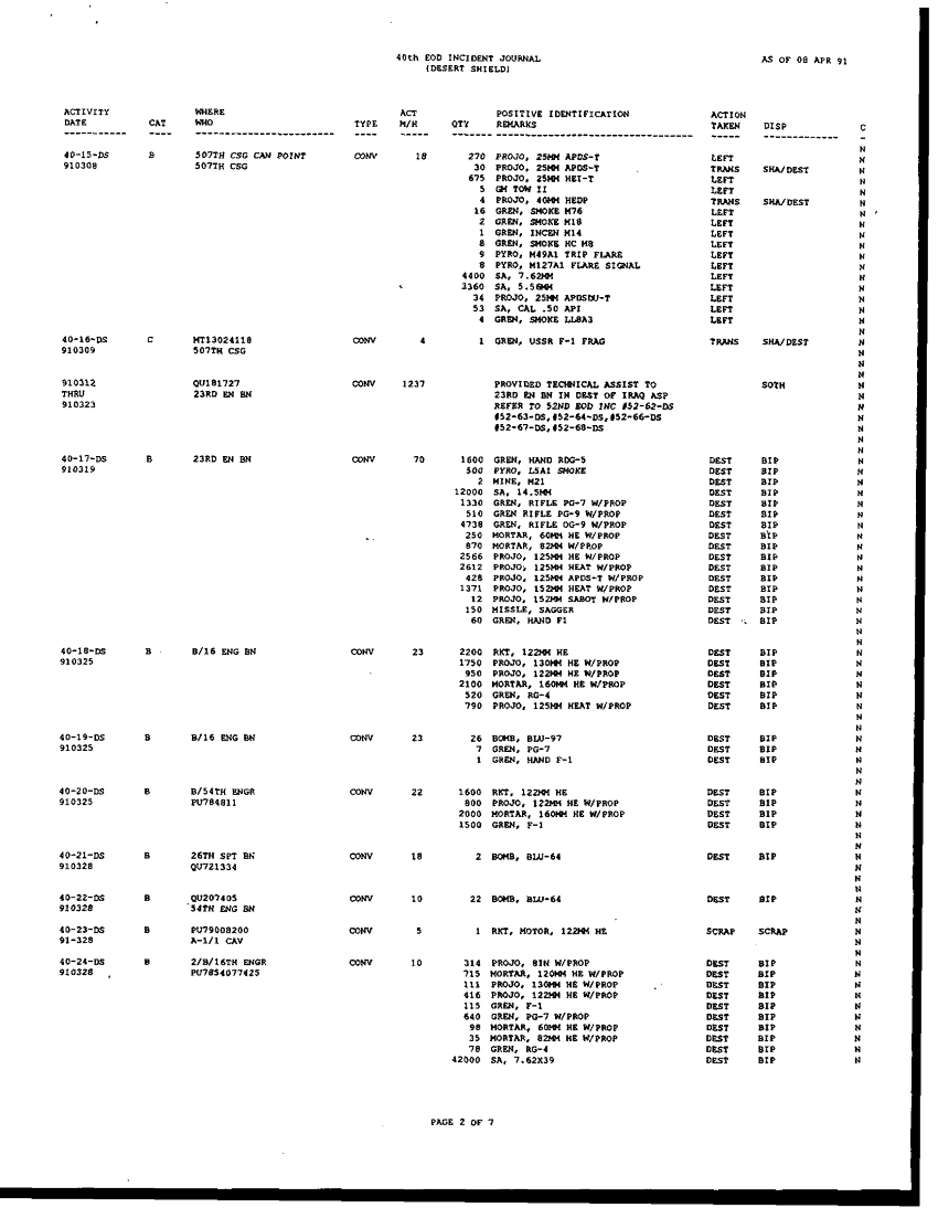 Document 196 f:/Week-42/BX005554/ARMY EOD IN DESERT STORM RESPONCE TO THE ASSISTANT SEC OF DEFENSE/request for information concerning eod operation:1104960912392
