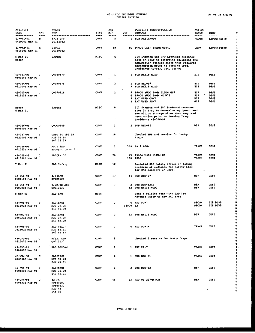 Document 196 f:/Week-42/BX005554/ARMY EOD IN DESERT STORM RESPONCE TO THE ASSISTANT SEC OF DEFENSE/request for information concerning eod operation:1104960912392