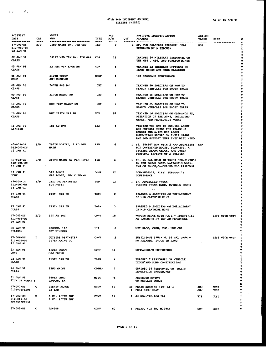 Document 196 f:/Week-42/BX005554/ARMY EOD IN DESERT STORM RESPONCE TO THE ASSISTANT SEC OF DEFENSE/request for information concerning eod operation:1104960912392