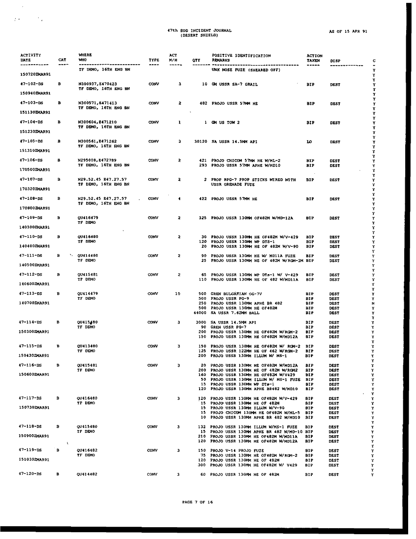Document 196 f:/Week-42/BX005554/ARMY EOD IN DESERT STORM RESPONCE TO THE ASSISTANT SEC OF DEFENSE/request for information concerning eod operation:1104960912392