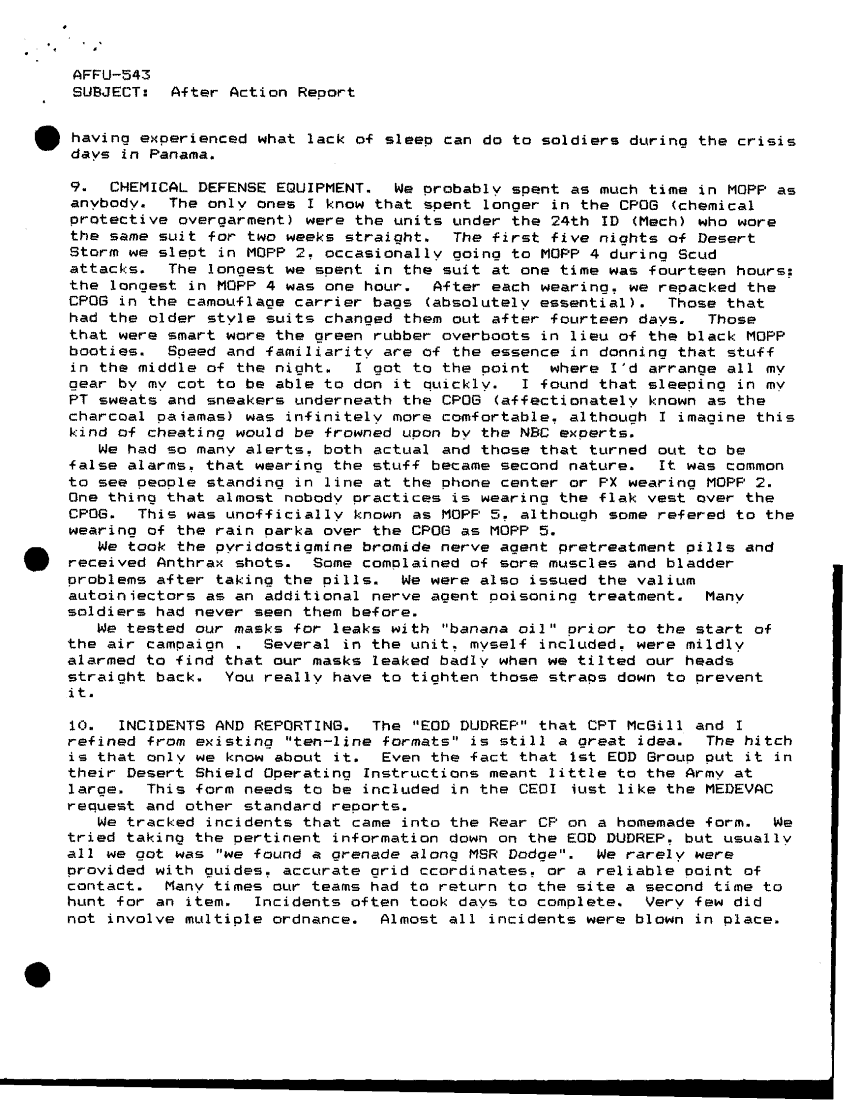 Document 14 f:/Week-42/BX005554/ARMY EOD IN DESERT STORM VOL 4 543 EOD TEAM EODCT/after action report on deployment to southwest a:1104960912415