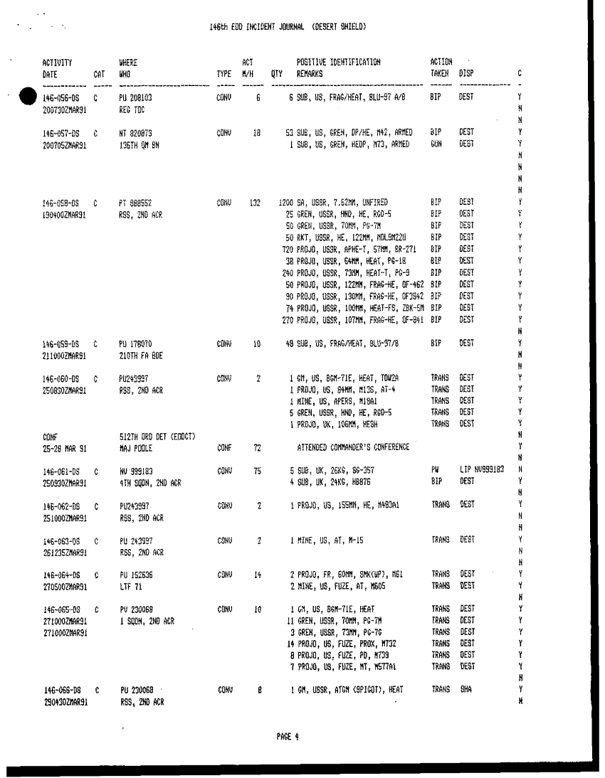 Document 27 f:/Week-42/BX005554/ARMY EOD IN DESERT STORM VOL 5 512 EOD CONTROL TEAM EODCT/reply to questionaire for all detachments:11049609124410