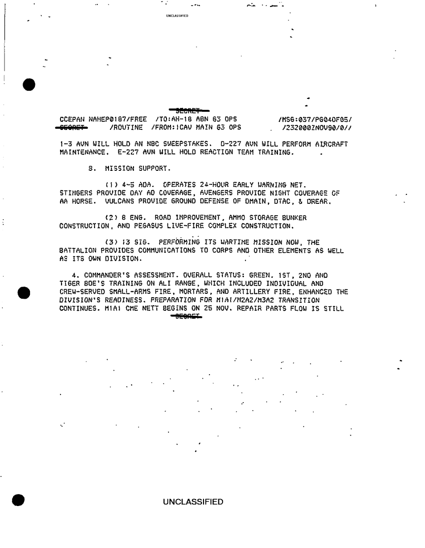 Folder Title = DUTY LOG 1 CAV DIV SITREPS G3 NOV 90