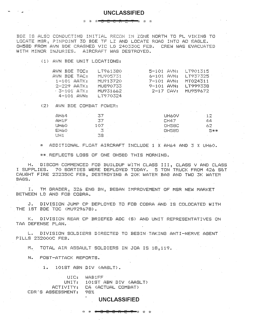 Folder Title = 101ST ABN DIV SITREPS FEB 91