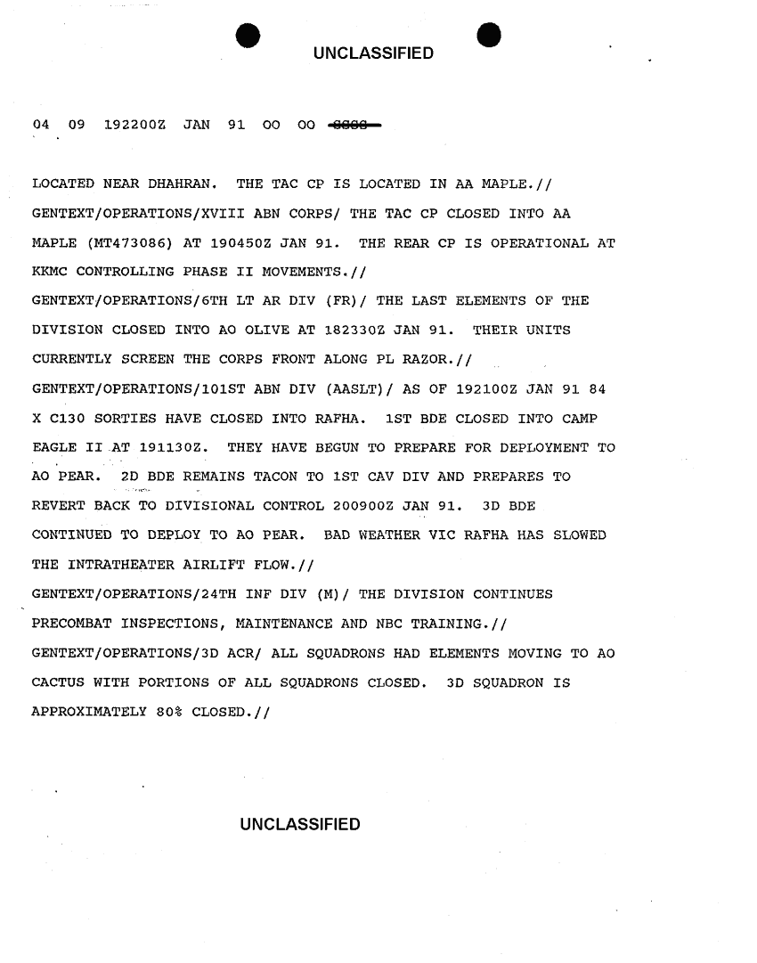 Document 9 f:/Week-15/BX000043/DUTY LOG G1 17 20 JAN 91/daily staff journal or duty officers log:11089615144229