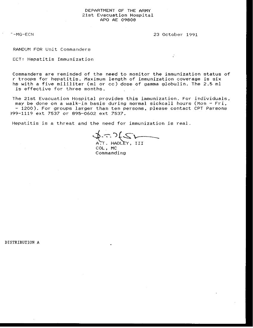 Subject = HEPATITIS IMMUNIZATION 23 OCT 91