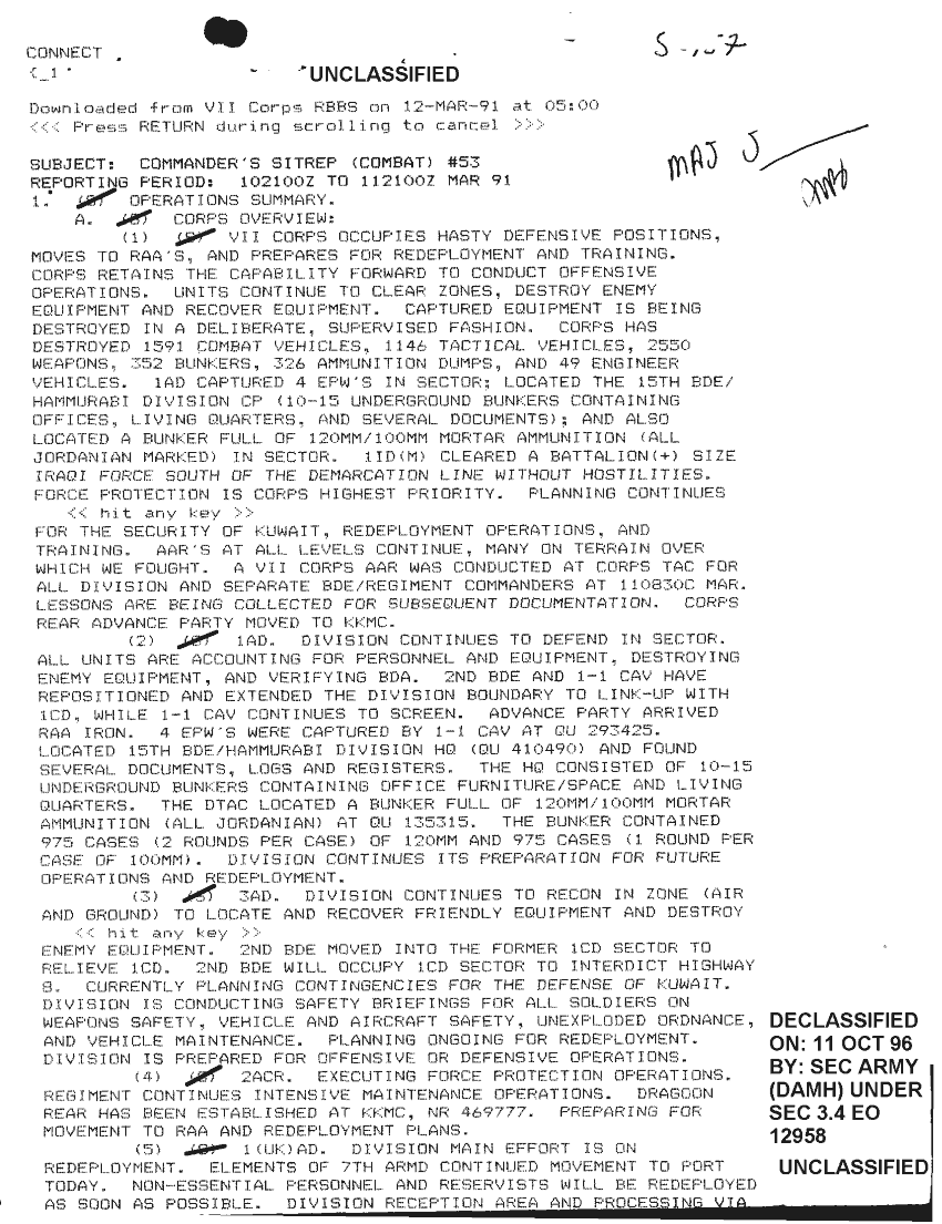 Document 3 f:/Week-33/BX002153/COMMANDERS SITUATION REPORTS-MAR 91/cdr sitrep no 55 vii corps 10 to 11 mar 91:11229616372520