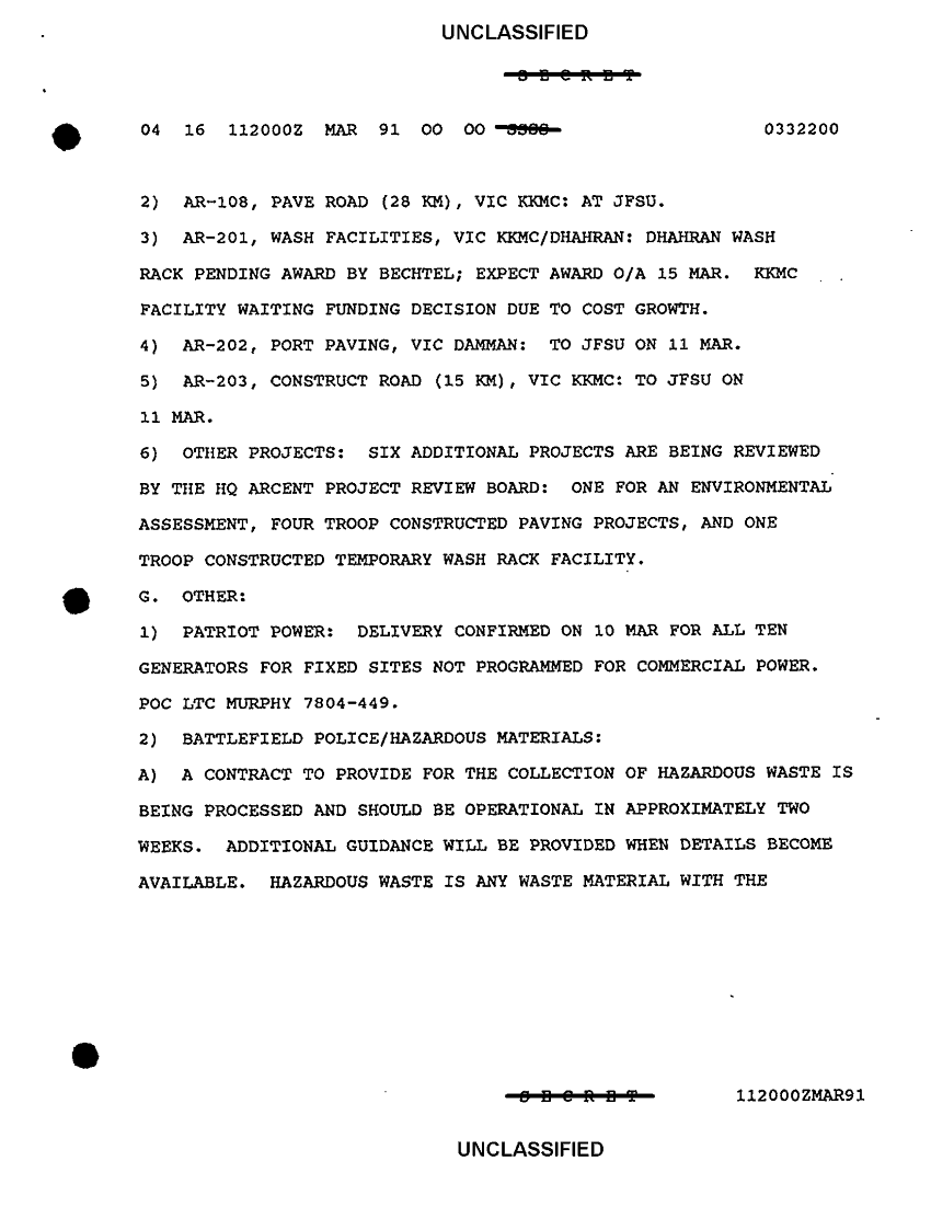 Document 16 f:/Week-33/BX000524/ARCENT LOGSTATS LOG 206 DATED 30 MARCH 1991/logstat report no 187 112000 mar 91:11229616375054