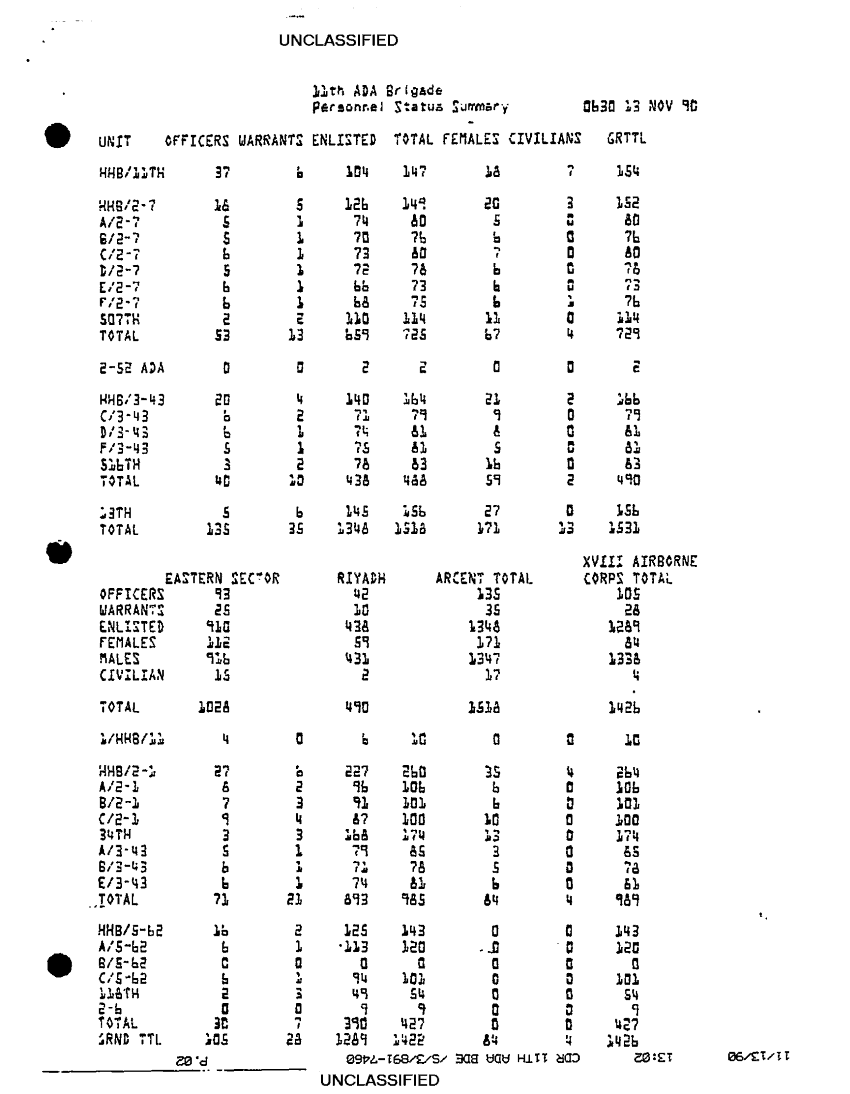 Document 8 f:/Week-32/BX000499/COMMAND REPORTS SITREPS 11TH ADA BDE 6 OCT 90-23 NOV 90/sitrep 11th ada no 80 13 nov 90:11089615141919
