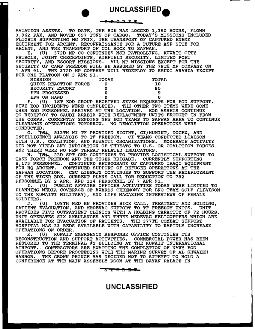 Document 5 f:/Week-33/BX000494/COMMMAND REPORTS RPTS TASK FORCE FREEDOM 1 OF 2 -1/sitrep tf freedom 31 mar 91:11089615144832