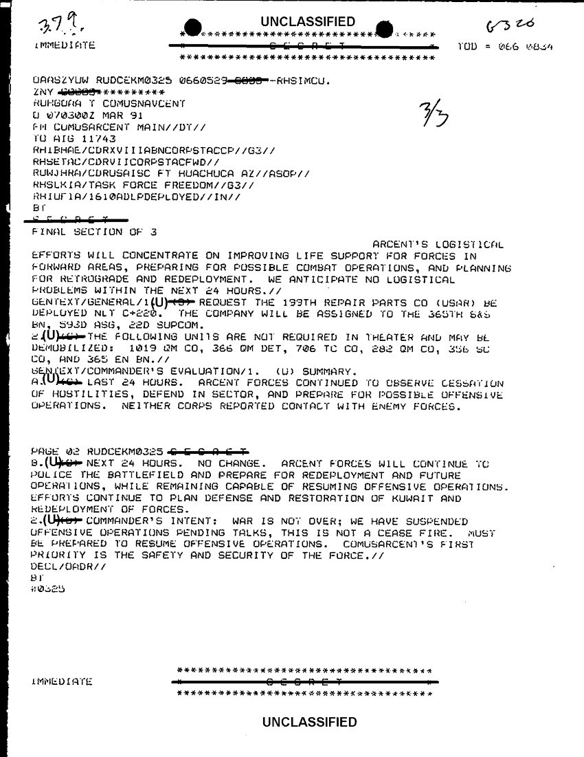 Document 7 f:/Week-29/BX000421/TACTICAL OPERATIONS CENTER LOGS - LUCKY TAC JOURNALS 8-14 MAR 91/sitrep usarcent 7 mar 91:11089615144531