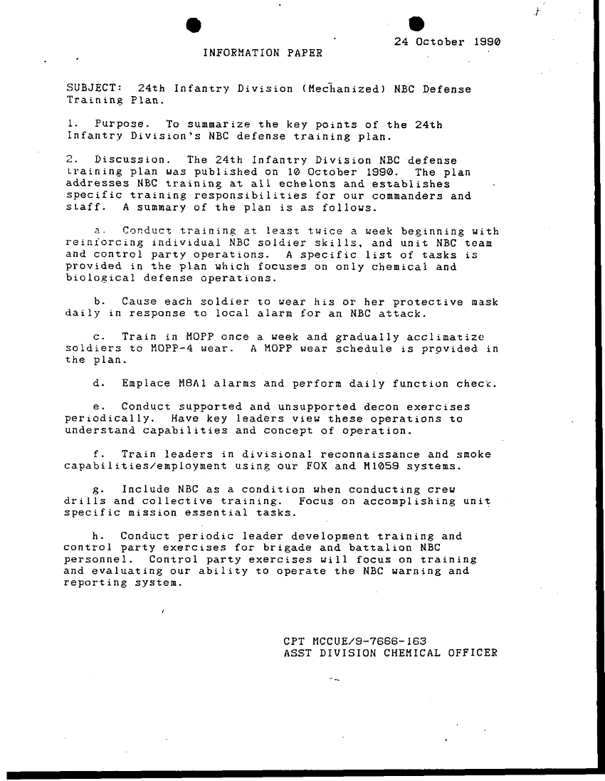 Subject = 24TH INFANTRY DIV NBC DEFENSE TRAINING PLAN