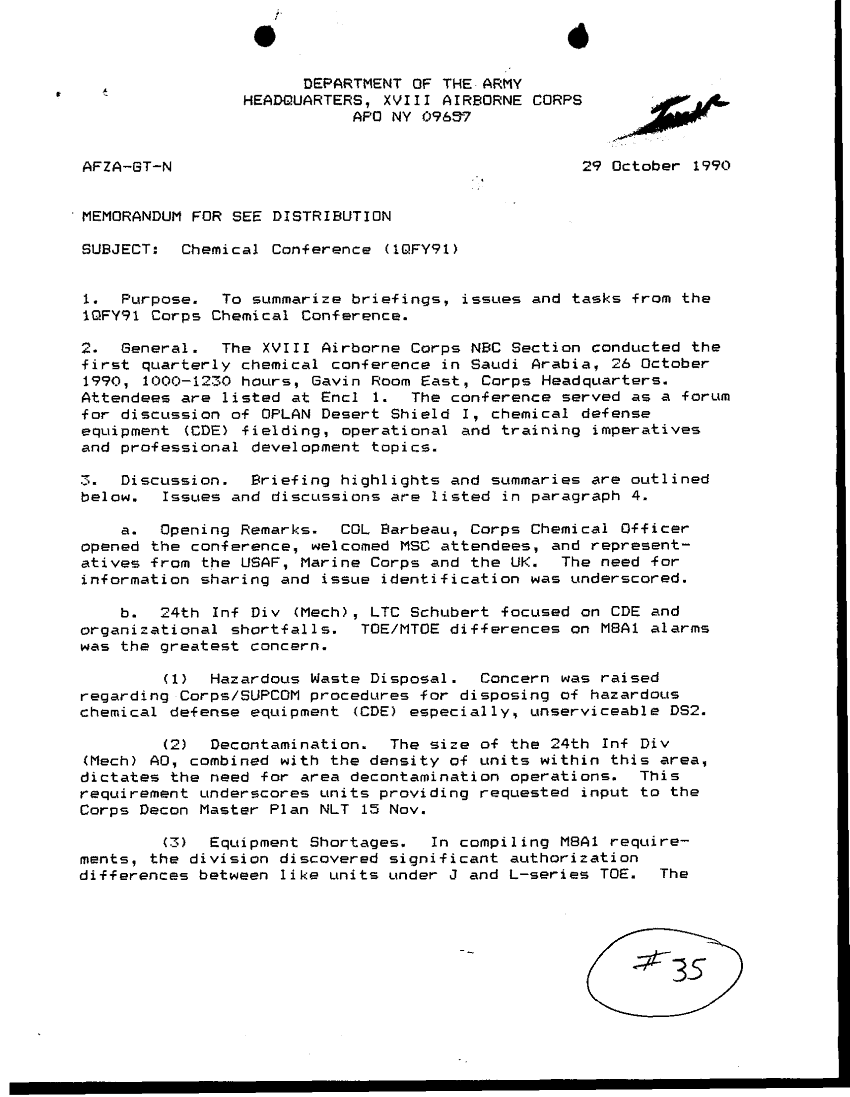 Document 8 f:/Week-29/BX000427/DAILY STAFF JOURNALS ARCENT 3-4 NOV 90/chemical conference:11089615151950
