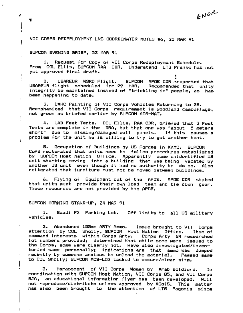 Document 2 f:/Week-25/BX000251/VII CORPS LNO TO 22ND SUPCOM NOTES/supcom evening brief 23mar91:11229616373838
