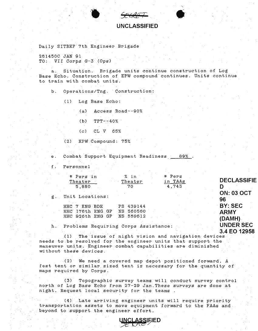 Folder Title = SITUATION REPORTS 7TH ENG BDE 22 DEC 90- 10 APR 91
