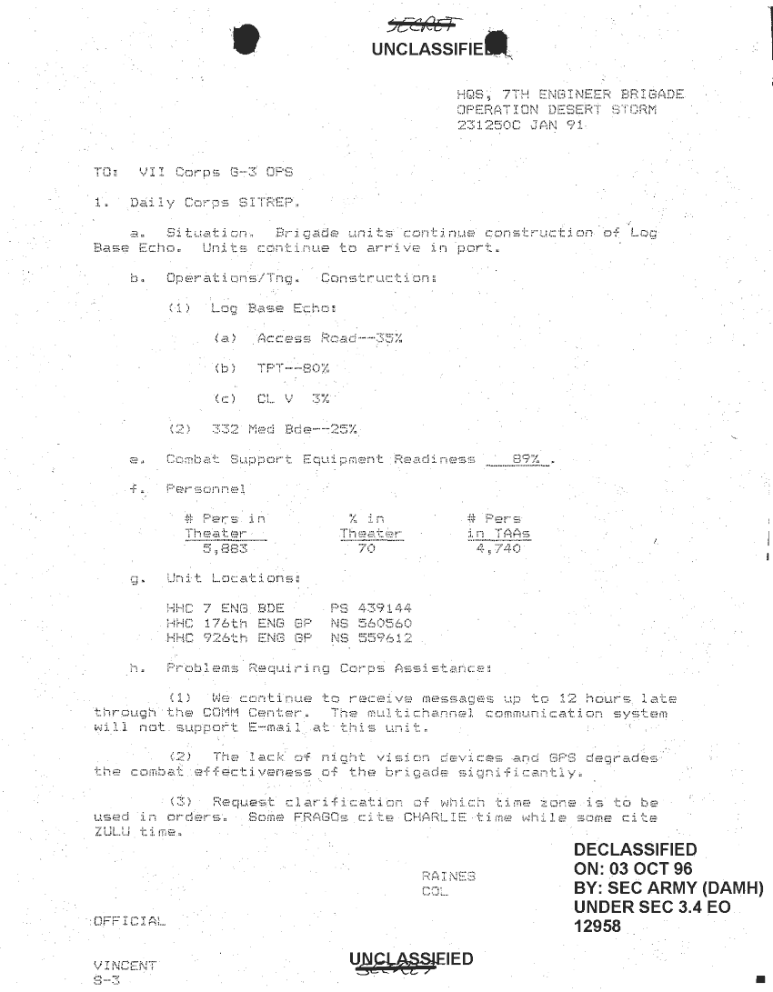 Document 41 f:/Week-24/BX000213/SITUATION REPORTS 7TH ENG BDE 22 DEC 90- 10 APR 91/daily sitrep 7th engineer bde:11089615143325