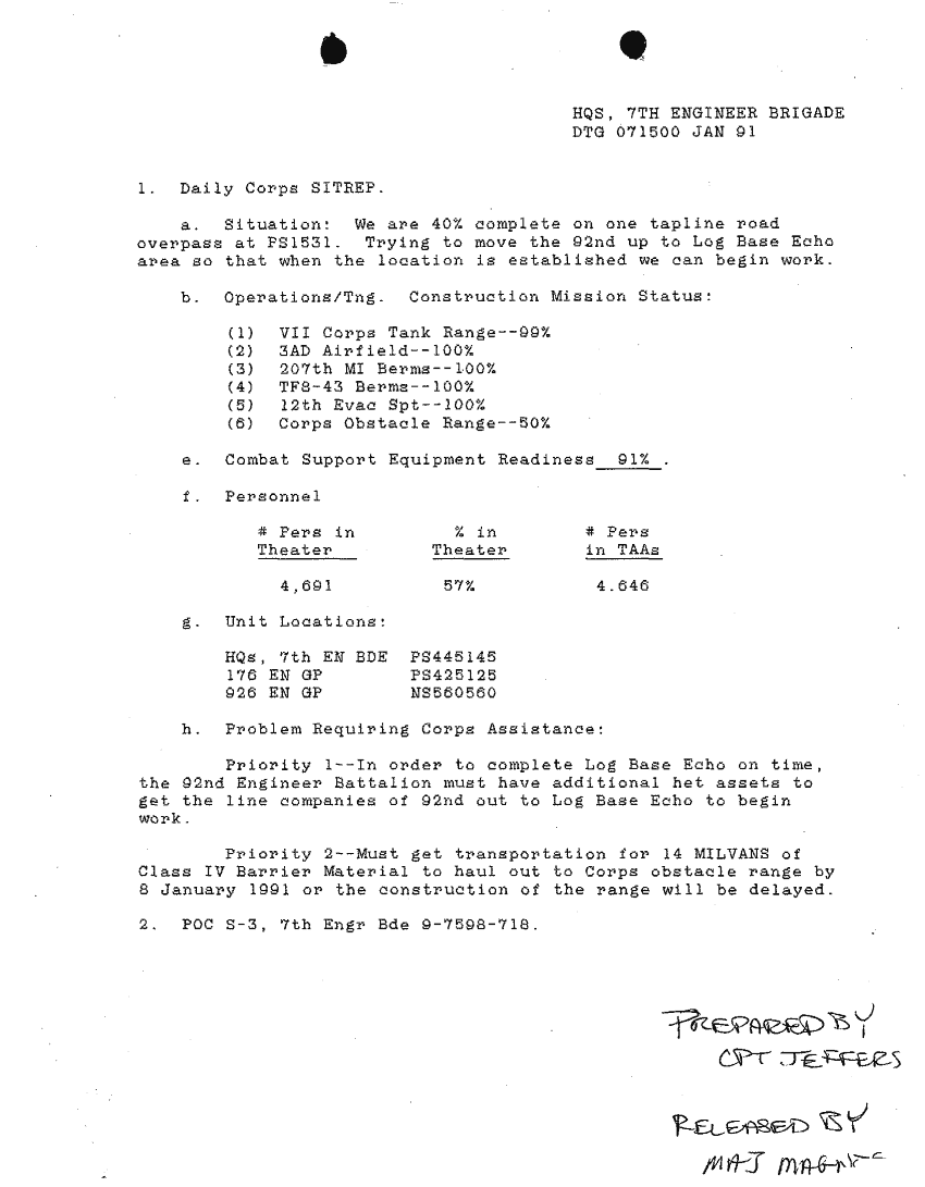 Document 41 f:/Week-24/BX000213/SITUATION REPORTS 7TH ENG BDE 22 DEC 90- 10 APR 91/daily sitrep 7th engineer bde:11089615143325