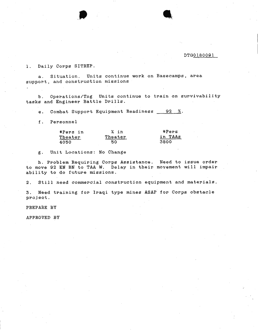 Document 41 f:/Week-24/BX000213/SITUATION REPORTS 7TH ENG BDE 22 DEC 90- 10 APR 91/daily sitrep 7th engineer bde:11089615143325