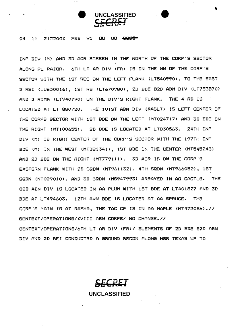 Document 11 f:/Week-10/BX000020/DUTY LOG G3 REAR XVIII ABC MAIN CP SITREPS FEB 91/message dated 21 feb 91:11229616375155