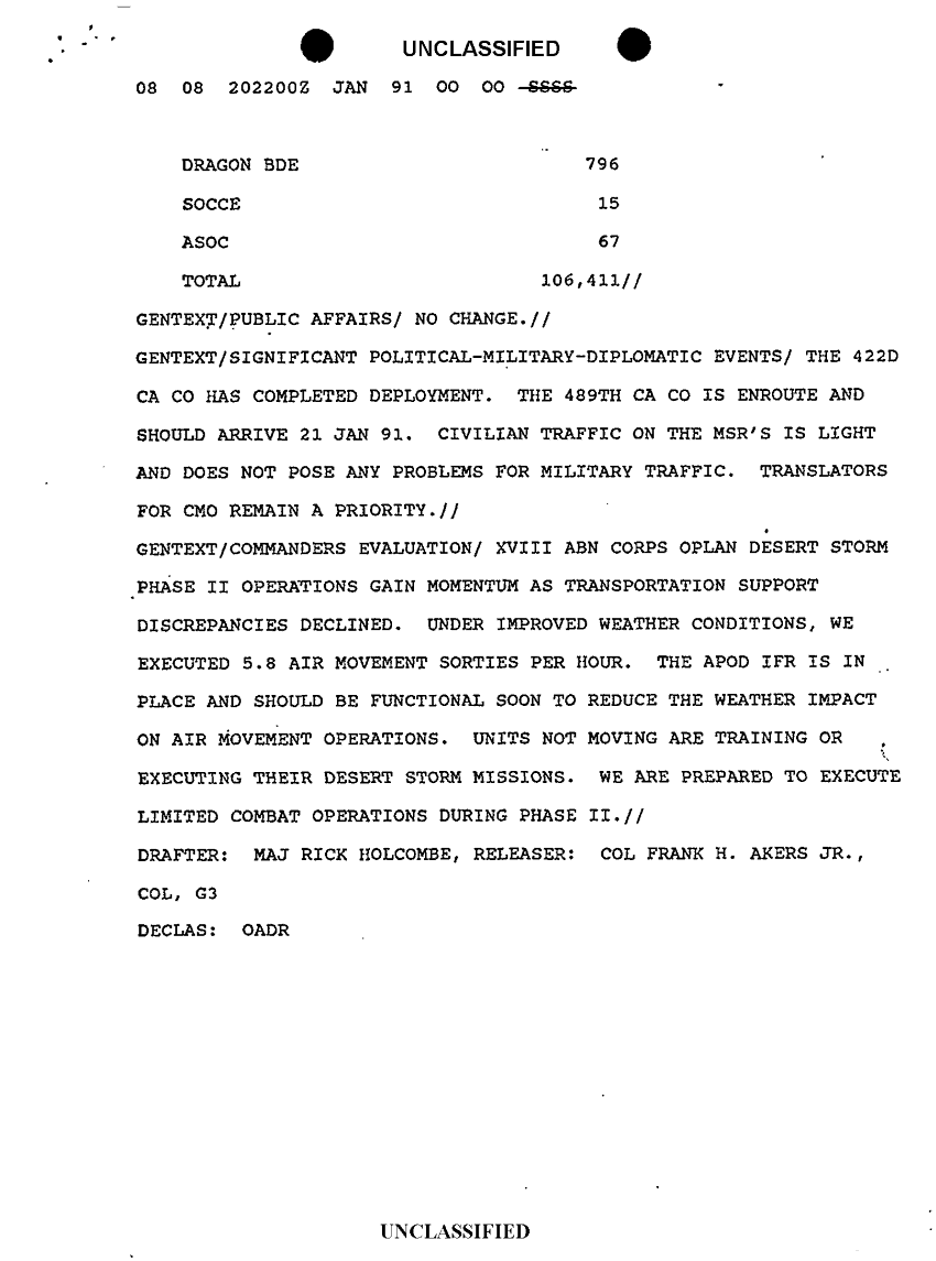 Document 8 f:/Week-10/BX000020/DUTY LOG G3 REAR XVIII ABC MAIN SITREPS CONT JAN 91/sitrep 21 jan 91:1108961513554