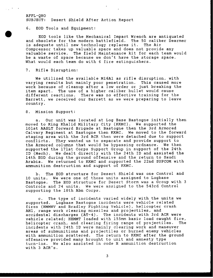 Subject = AFTER ACTION REPORT ON EOD OPERATION DURING OPER