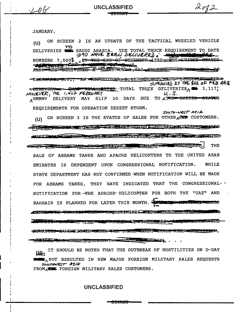 Subject = OPERATION DESERET STORM UPDATE JAN 91