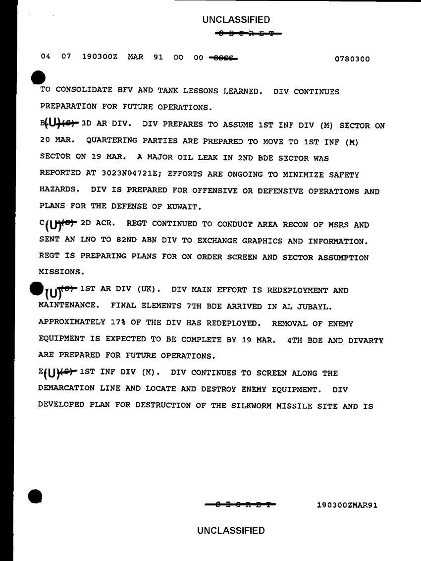 Document 7 f:/Week-30/BX000443/COMMAND REPORTS ARCENT SITREPS 1-22 MAR 91/sitrep 19 mar 91:12069615463435