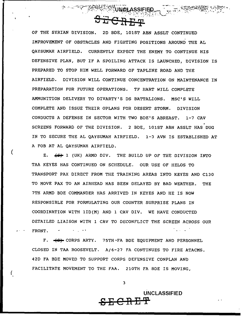 Document 13 f:/Week-43/BX000271/SPT DOC FOR DAILY STAFF JOURNAL 22 JAN 91 TACT OPS CENTER/cmdr s sitrep cbt 4 21 jan 91:12069615464147