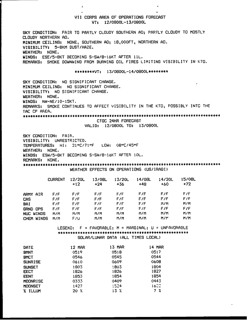 Subject = VII CORPS AO FORECAST 13 MAR 91